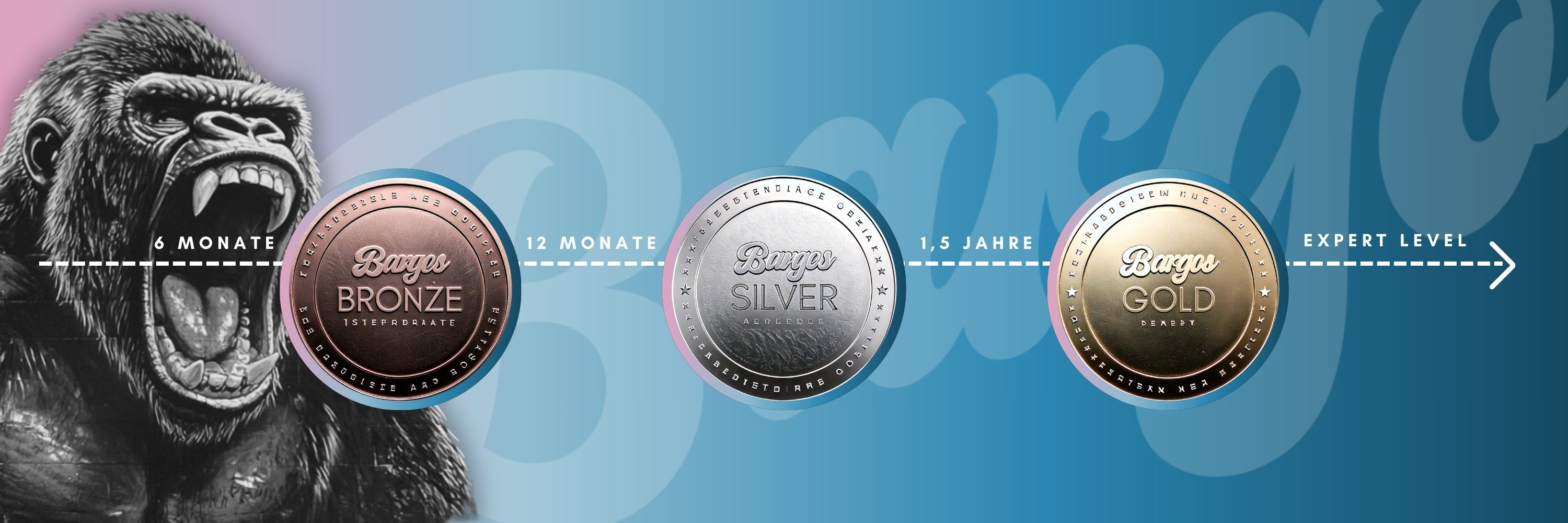 Um stets motiviert zu bleiben, erhältst du deine erste Bronze Medaille bereits nach 6 Monaten im Coaching. Deine zweite Medaille erhältst du nach einem Jahr und die dritte Goldmedaille nach 1,5 Jahren. Somit hast du neben deinem Traumkörper auch Trophäen, die dich jederzeit an deinen Weg zu deinem Traumkörper erinnern und dich stolz machen.